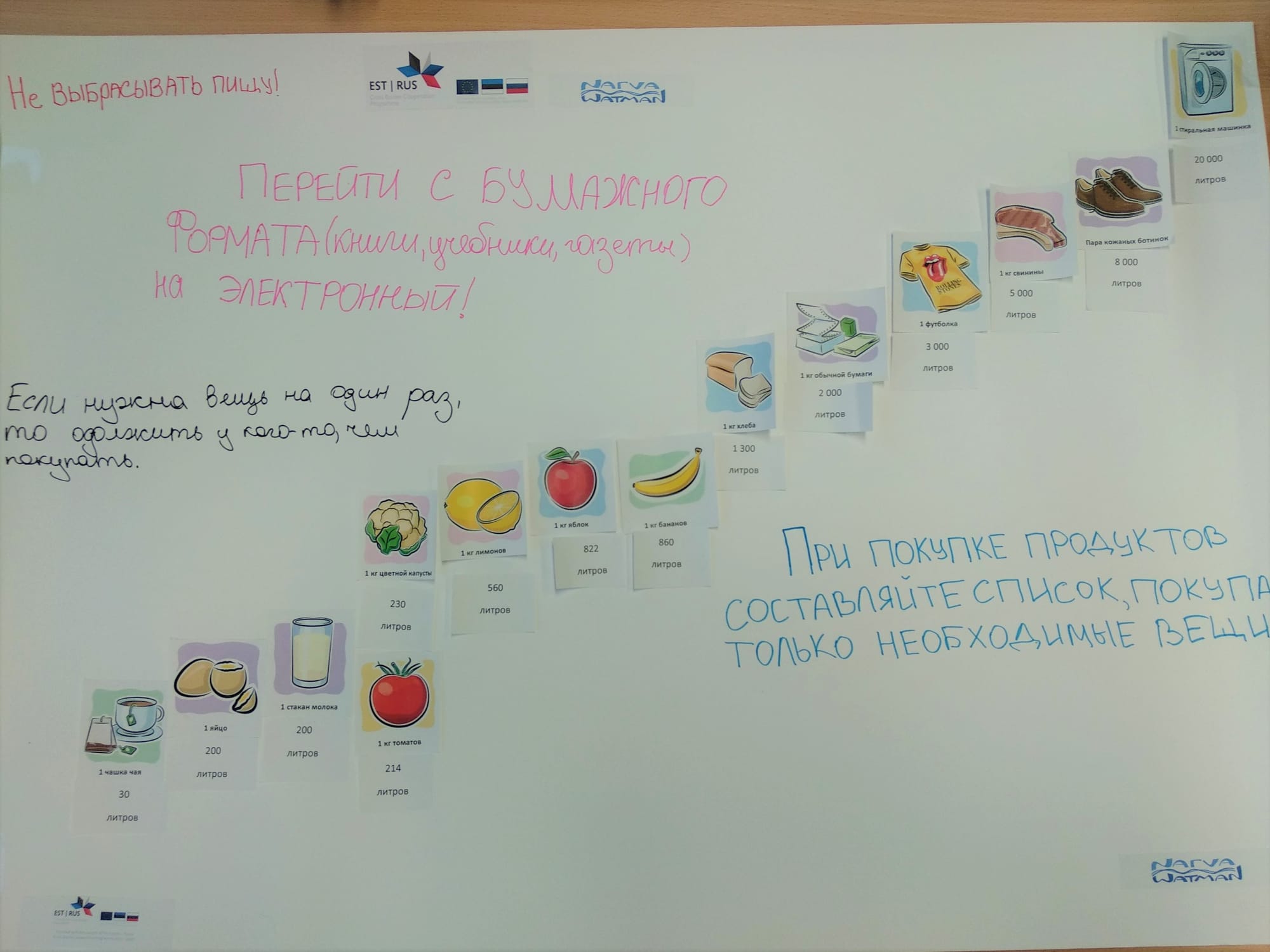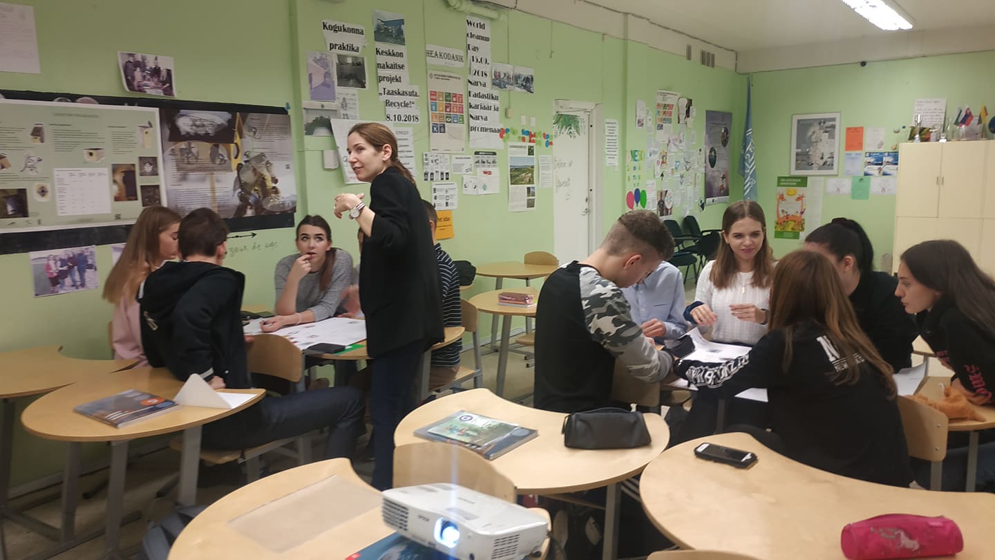 The representatives of Tallinn University of Technology visited the Soldino Gymnasium with interactive lecture related to project activities and distribution of global water resources. During the interactive part of the class students were divided into several groups and worked on calculation of the virtual water content in different agricultural and industrial products. At the end of the activity each group came out with a poster, where students’ calculation for virtual water content as well as their suggestions on sustainable water use were presented.