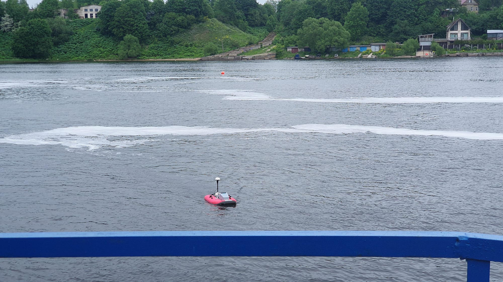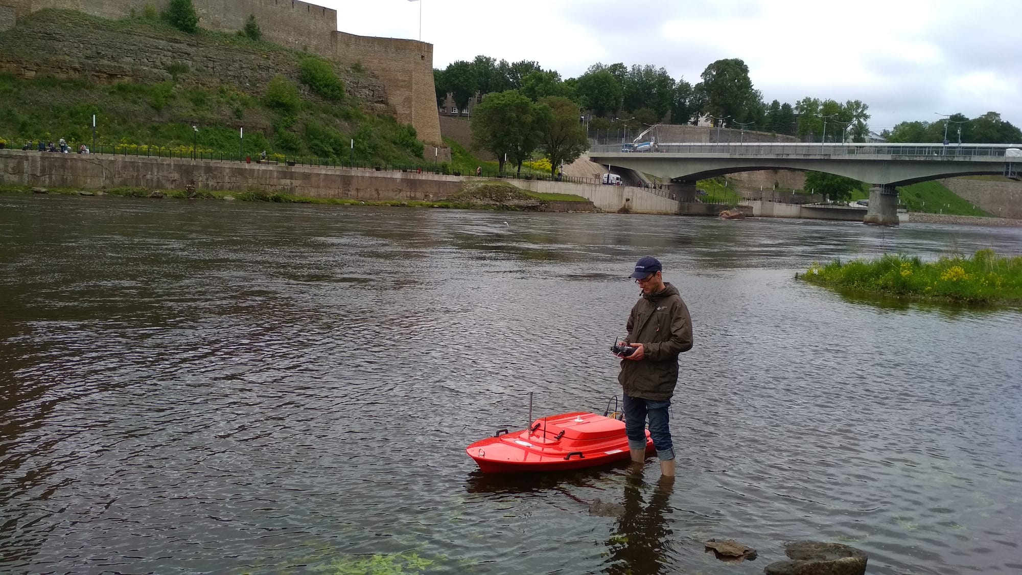 On 10 - 11th of June 2020 the first Narva River discharge measurements were carried out after the COVID-19 outbreak. The measurements were taken by Estonian and Russian specialists from Estonian and Russian shores. Estonian specialists were using for the first time the latest remote control surveying boat (rQPOD) equipped with acoustic doppler profiler (RiverSurveyor-M9). Profiling was done on 2 cross-sections of Narva river (up and down the Friendship bridge) and in Narva HPS derivation channel. To ensure proper data collection, profiling was done multiple times.